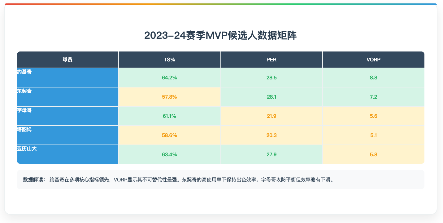 高级数据揭示了伦纳德在效率和防守端的优势,这些是传统数据无法体现的。这个案例完美说明了为什么NBA进入了"数据革命"时代——传统的得分、篮板、助攻已经无法完整描述现代篮球的复杂性。